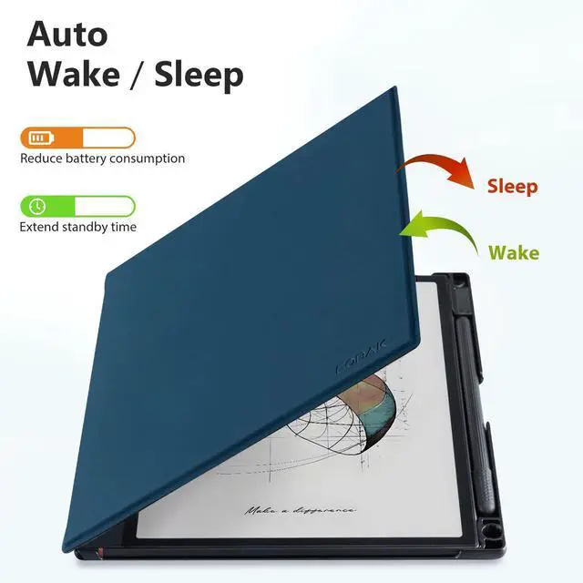 Auto Sleep-Wake: The automatic wake up sleep function can automatically wake up the BOOX tablet ePaper to read when the front cover is opened, and automatically enter the sleep state when the front cover is closed, effectively saving power and extending the service life of the tablet