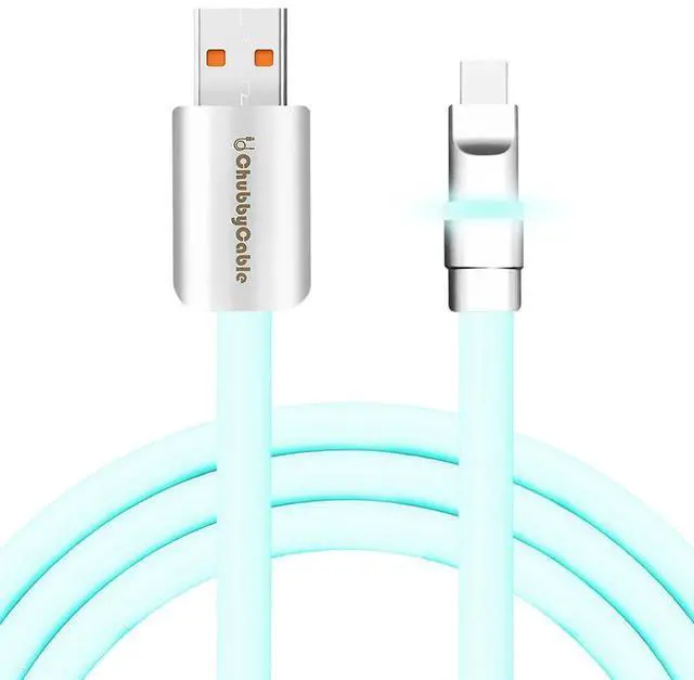 chubbycable Neon Chubby - Fast Charge Cable with Smart Light RGB Color Gradual Light Up LED USB Charging Cable, Light Blue, USB-A to Type-C, 0.82 FT