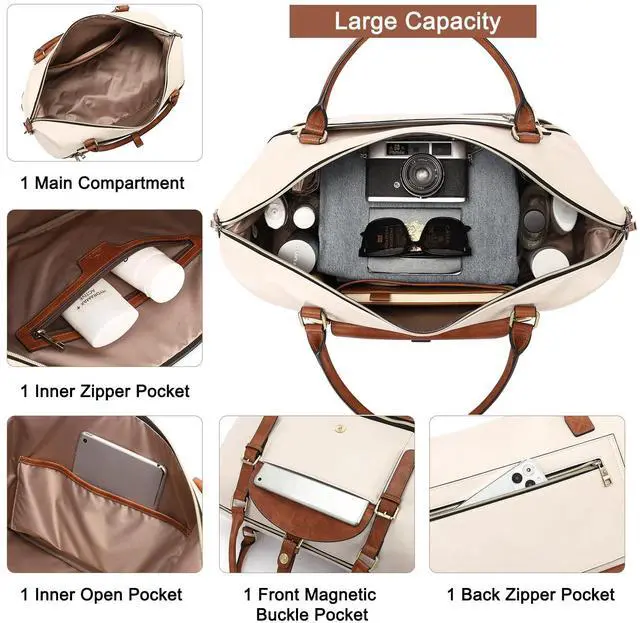 Large Capacity:3 main compartments: 1 padded laptop compartment with 15.6" or under laptop and 2 inner slot pockets; 1 middle magnetic compartment with 2 inner slot pockets and 1 inner zipper pocket; 1 front zipper compartment with 3 inner slot pockets, 2 pen loops and 3 card slots; 1 back zipper pocket. Multi-pockets keep your daily items like iPad, books, 15.6" or under laptop, umbrella, cosmetics and other daily things, well organized.