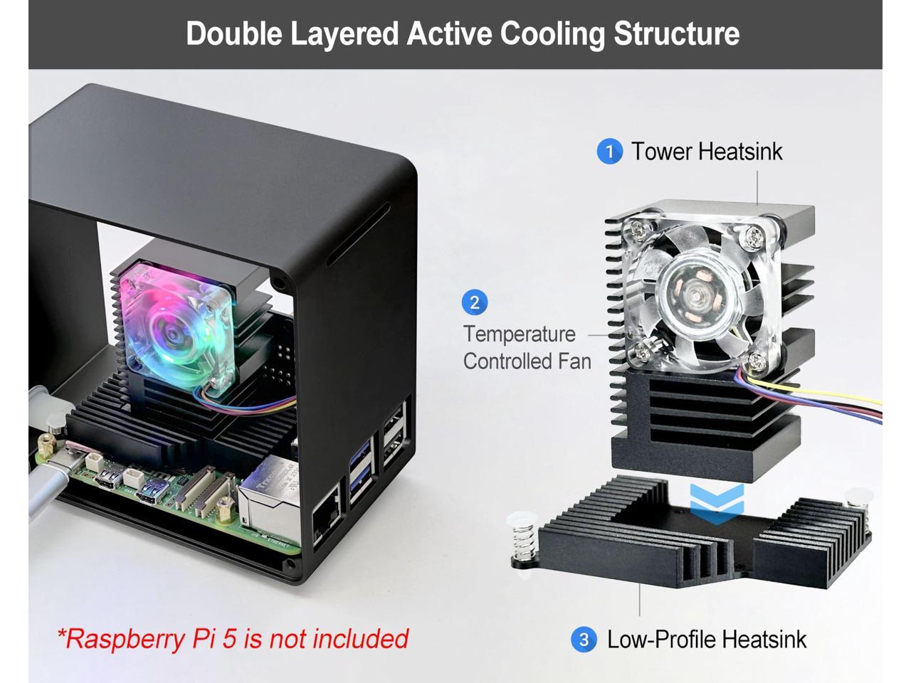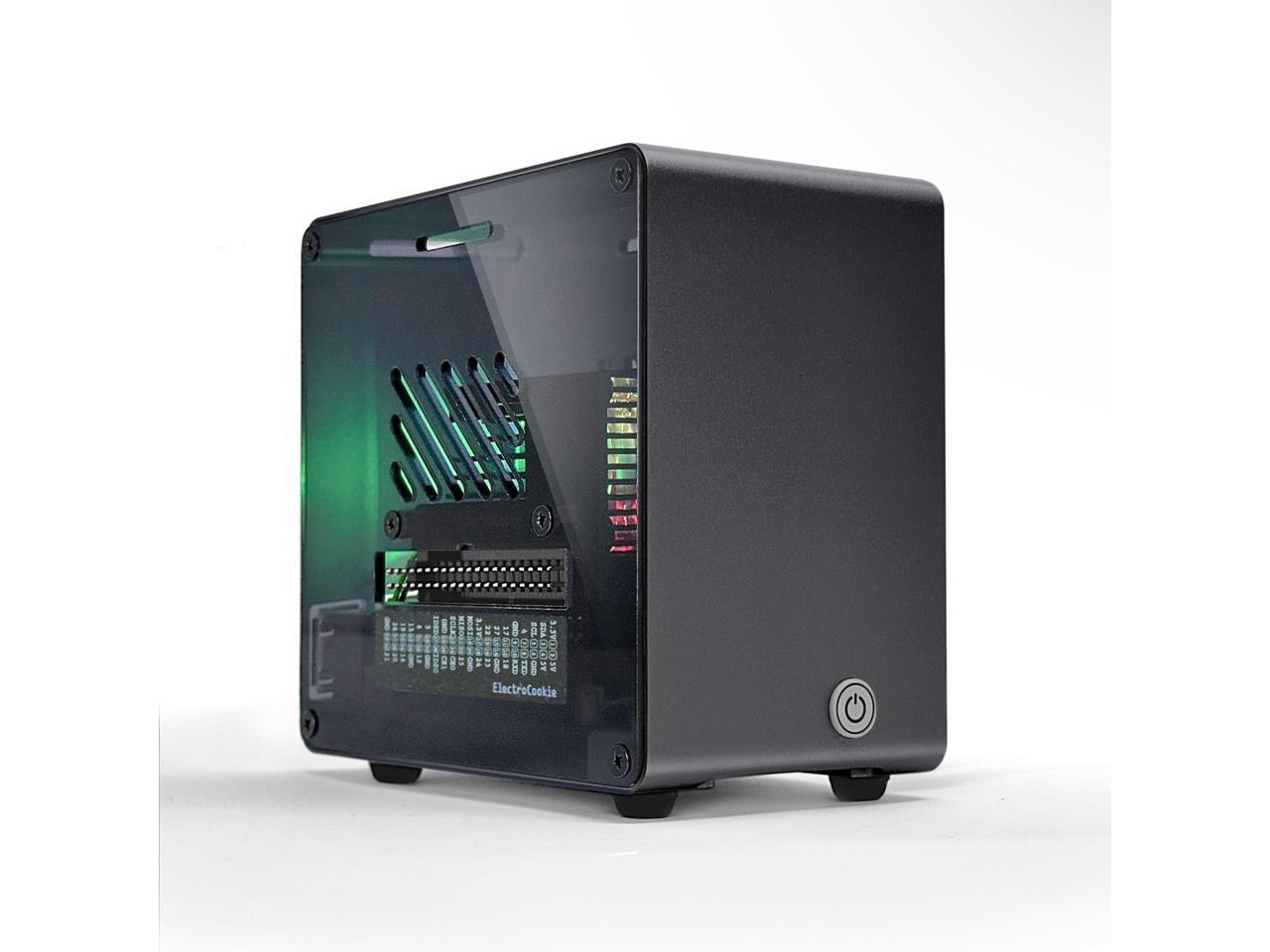 ElectroCookie Raspberry Pi 5 Case, Aluminum Mini Tower Case with Cooling Fan and Color Changing Ambient Light (Black)