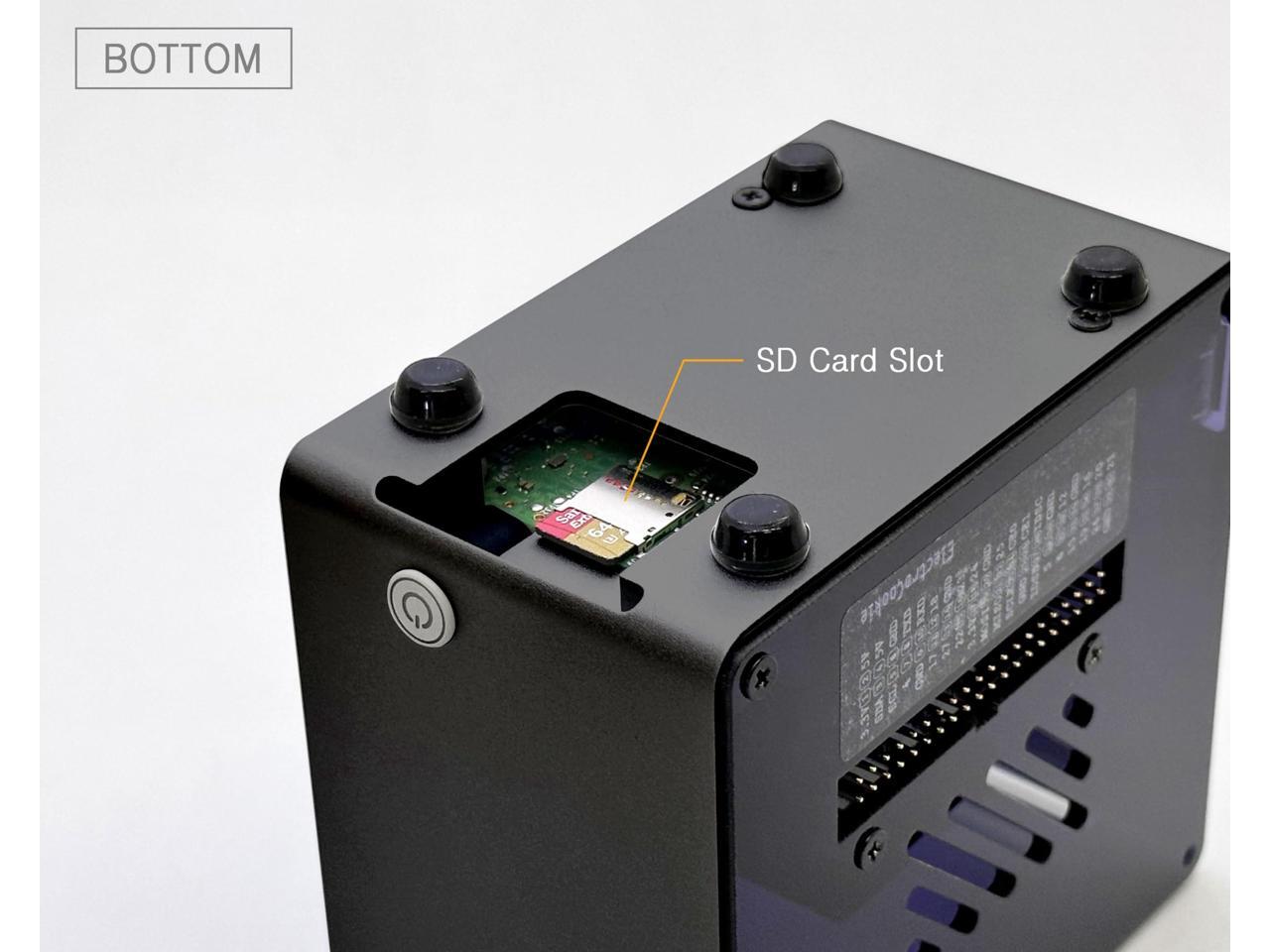 - Easy Access & Soft-Touch Power Button: GPIO pins, SD card slot, USB, Ethernet, Power, and Micr