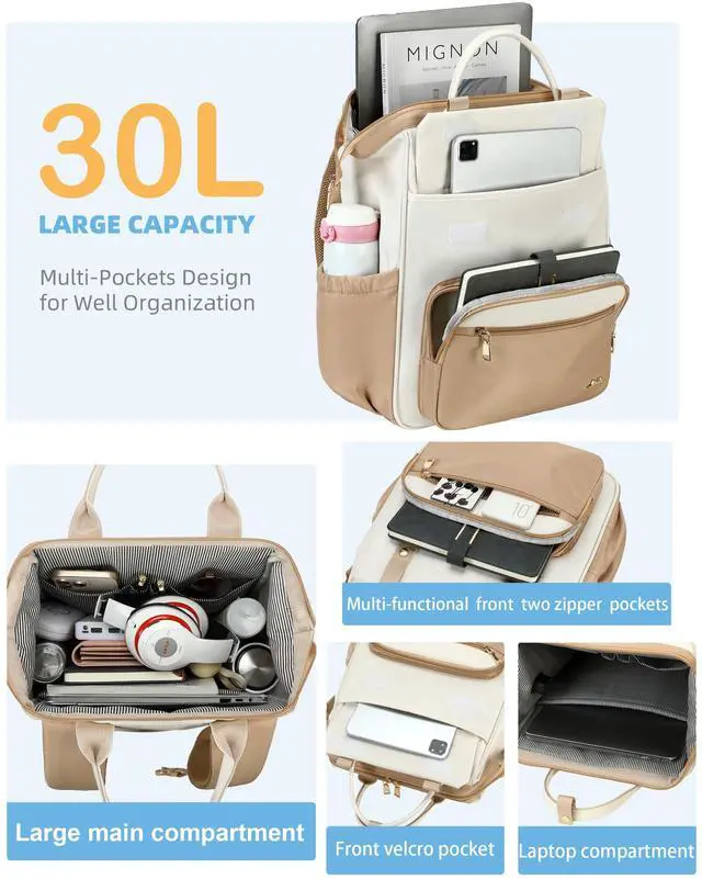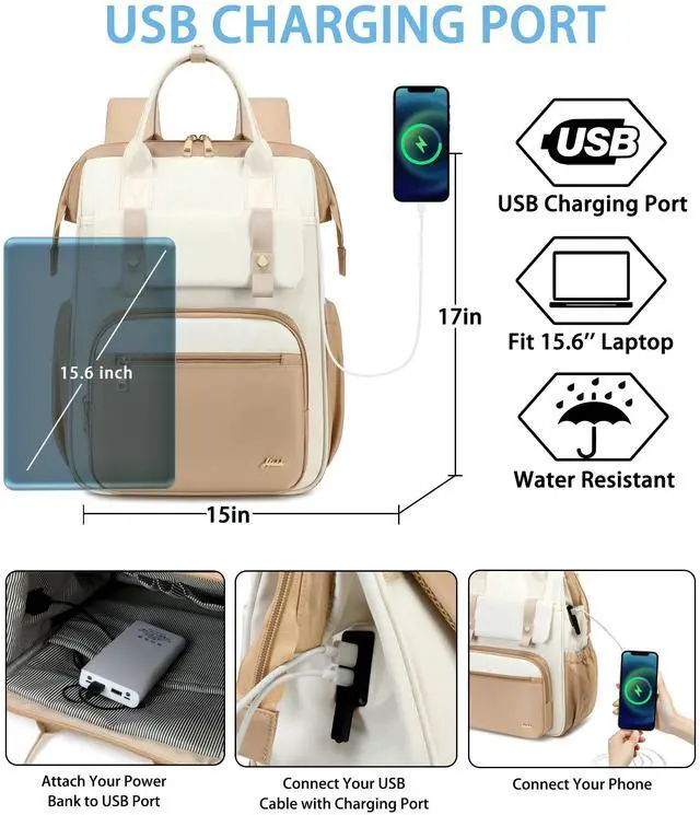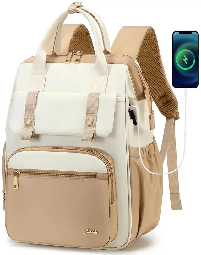Hidds Laptop Backpack for Women 15.6 In Work Business Computer Bag School College Backpacks Commuter Back Pack Purse Girls Nursing Bookbag Womens Anti Theft Travel Daypack with USB Port - Khaki Beige