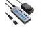 KAGO Powered USB Hub 3.0 with ac Adapter -7 USB 3.0 Data Transfer Ports, 4 Charging Ports with Individual On/Off Switches, Power Adapter Included