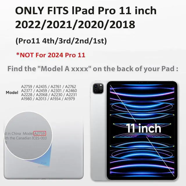 Case for iPad Pro 11 4th/3rd/2nd/1st -- Only fits iPad Pro 11 inch 2022/2021/2020/2018. (Model number : A2435, A2759, A2761, A2762, A2301, A2377, A2459, A2460, A2068, A2228, A2230, A2231, A1934, A1979, A1980, A2013 )The Pencil is NOT included ! and you can find step by step install instruction video in our store.
