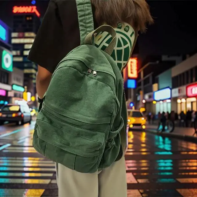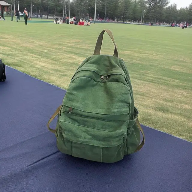 IAUGO Canvas Backpack for Women Cute Backpack for Women Vintage Laptop Aesthetic Knapsack-Green