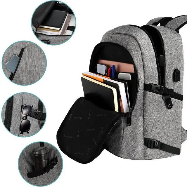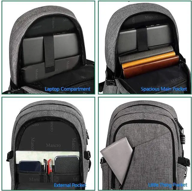 Mancro 17.3 Inch Business Laptop Backpack Large Travel Backpack with USB Charging Port Lightweight Anti-Theft Laptop Backpack for Men & Women
