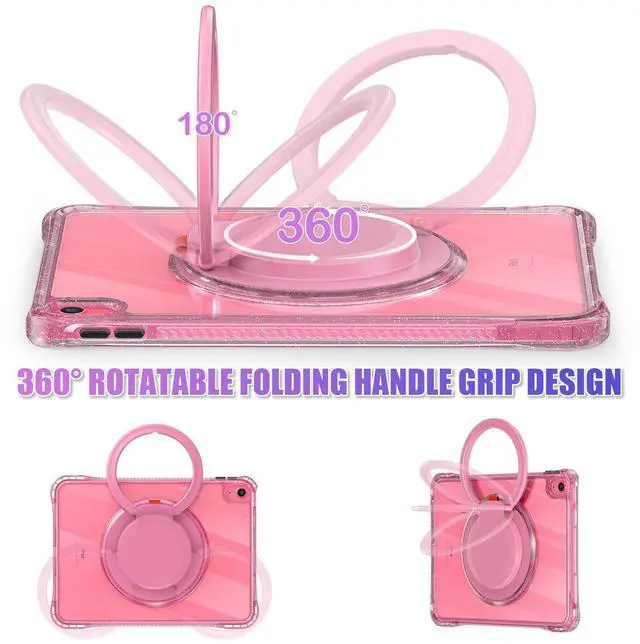 MEEgoodo Case for iPad A16 11th Generation 11 inch 2025, Cover for iPad 10th Generation 2022, Glitter Tablet Cases with Soft TPU & Transparent PC & Rotating Stand for Kids, Pink