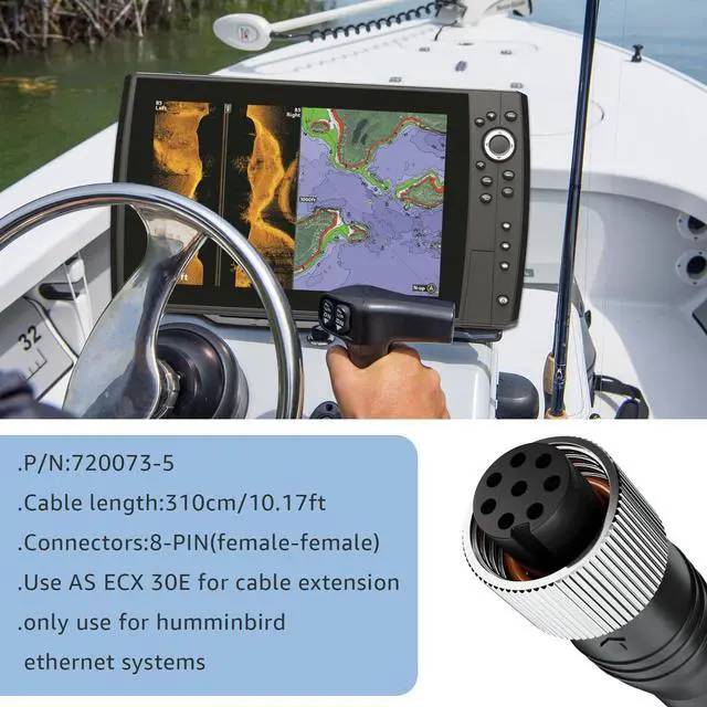 Product Usage: 720073-5 AS EC 10E Ethernet Cable Extension Cable - Suitable for connecting Humenbird Ethernet systems on Lowe Boats for normal use of fish detection equipment in marine environments