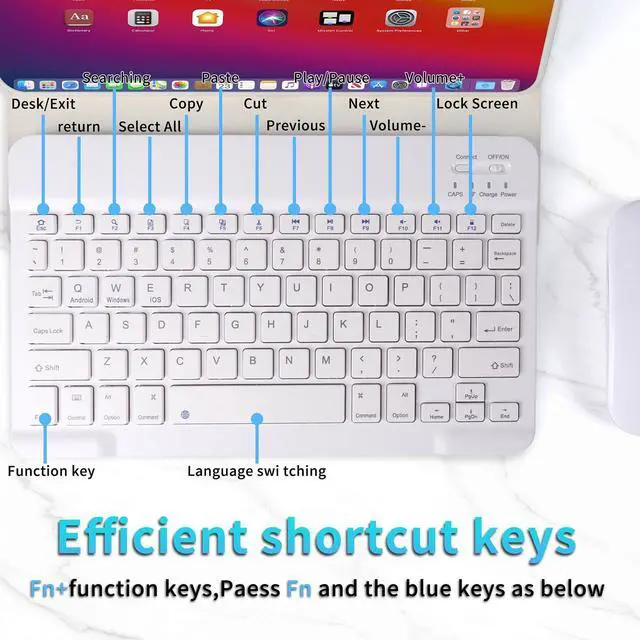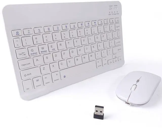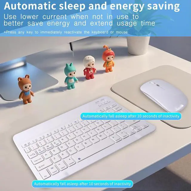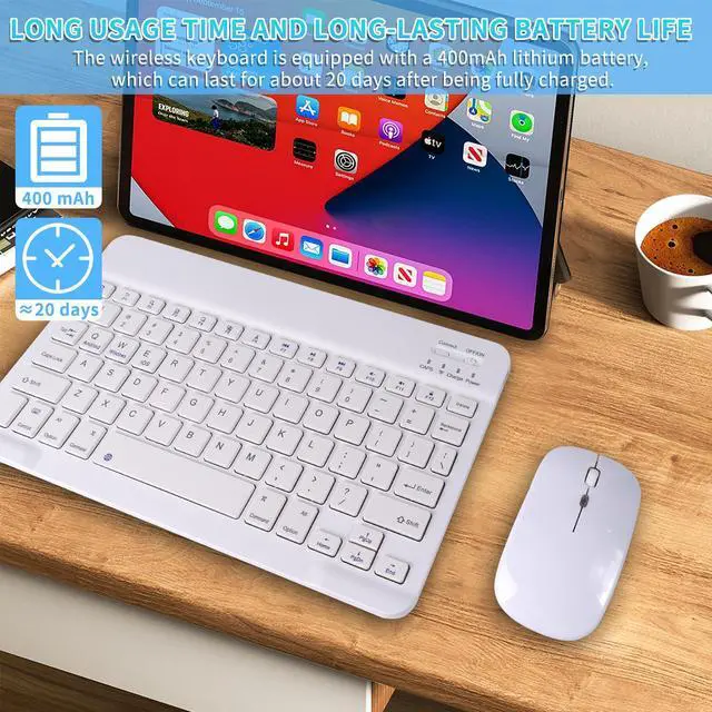 Wireless Bluetooth Keyboard and Mouse Combo - 10-Inch Rechargeable, Long Battery Life Over 30 Days, Ultra-Silent Keys, Compatible with iPad, Laptop, Android, and Windows(White)