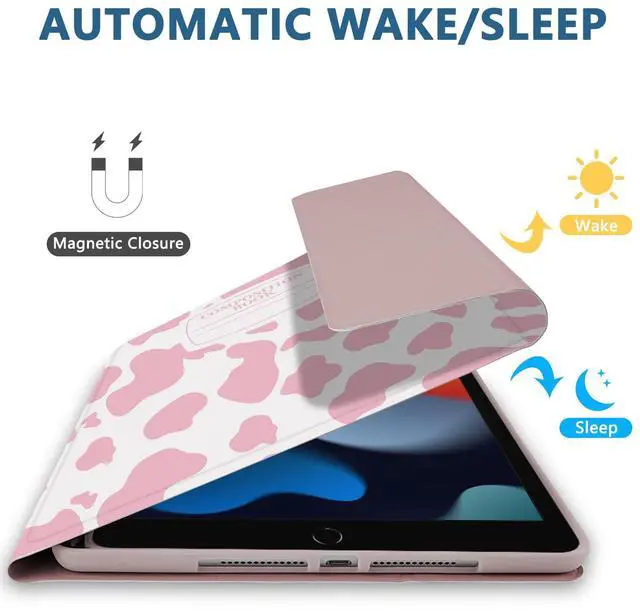 TopPerfekt for iPad 9th Generation Keyboard Case 10.2" 2021, Magnetically Absorbent, Auto Sleep/Wake, Pencil Holder for iPad 8th Gen 2020, 7th Gen 2019, Air 3rd, pro 10.5" (Notebook Pink Cow)