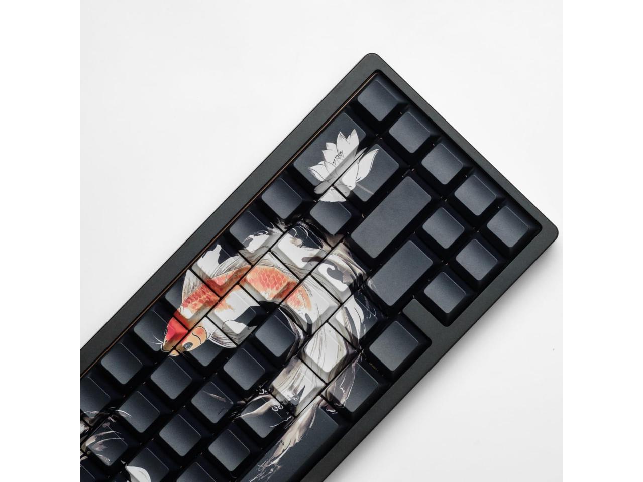ULTRAEQUIP PBT Keycaps Lucky Koi Keycaps 60 75 100 Percent, Shine Through Keycaps Side Printe Thick Keycaps Cherry Profile 130 Keys Dye Sub Custom Keycap Set keycaps for MX Switch Mechanical Keyboard