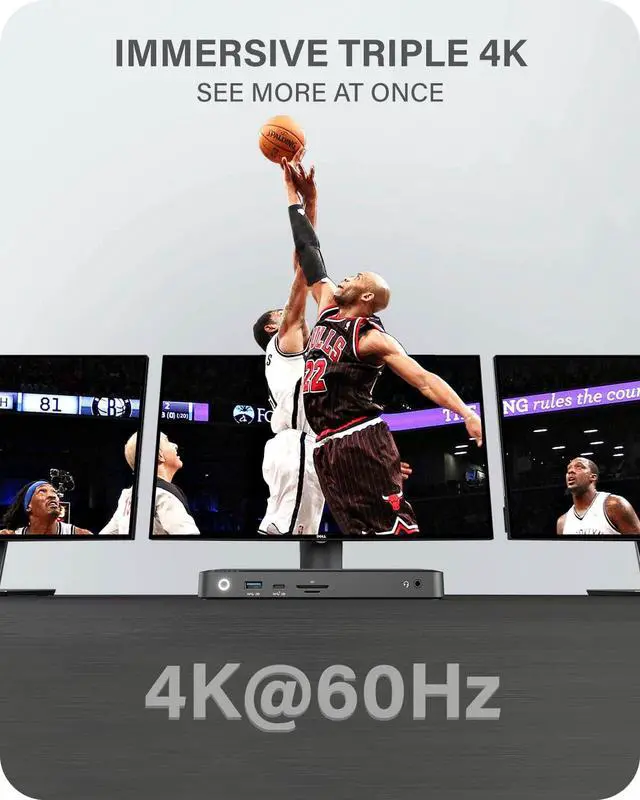 Triple 4K display: The universal docking station can connect to three external displays with the help of its triple DisplayPort outputs. It supports up to 4K Ultra HD display on an external large screen TVs and on 4K compatible displays. It offers you a superior viewing experience, whether it is an ultra-sharp picture or an incredibly smooth video. ^^