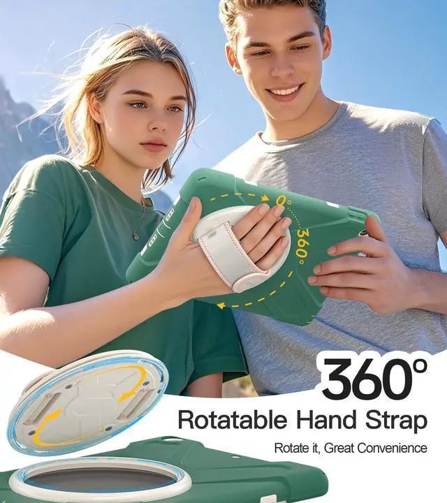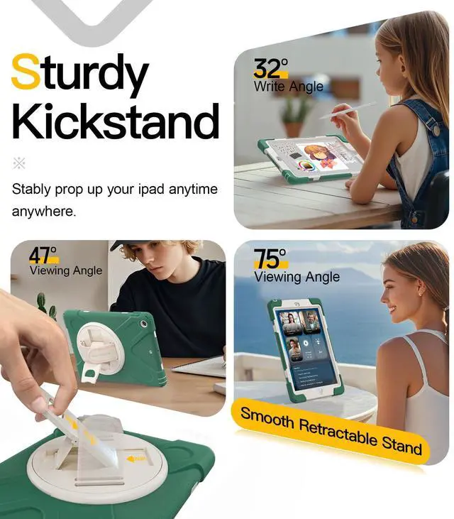 360degRotating Handle/Stand: Located on the back of iPad 5th Gen 9.7 inch heavy duty cases, built-in 360 degree rotating kickstand and adjustable handle hand strap provide a more flexible and convenient way to use your tablet during work ,study or journey, ideal for students,teachers,engineers.