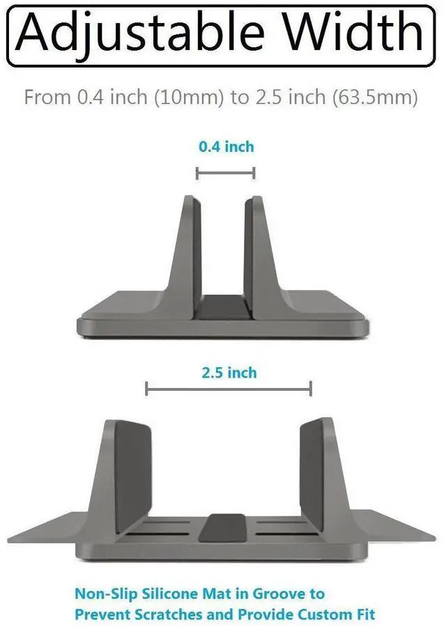 [(QUALITY MATERIAL)] Our vertical laptop stand is made with Premium Aluminum, State of the Art CNC Laser Technology, Sand Blasted, Brushed Surface, Rounded Edges, Eco Friendly Non-toxic Silicone mat in the Groove and Bottom, Scratch Resistant and Durable for your Everyday Use.