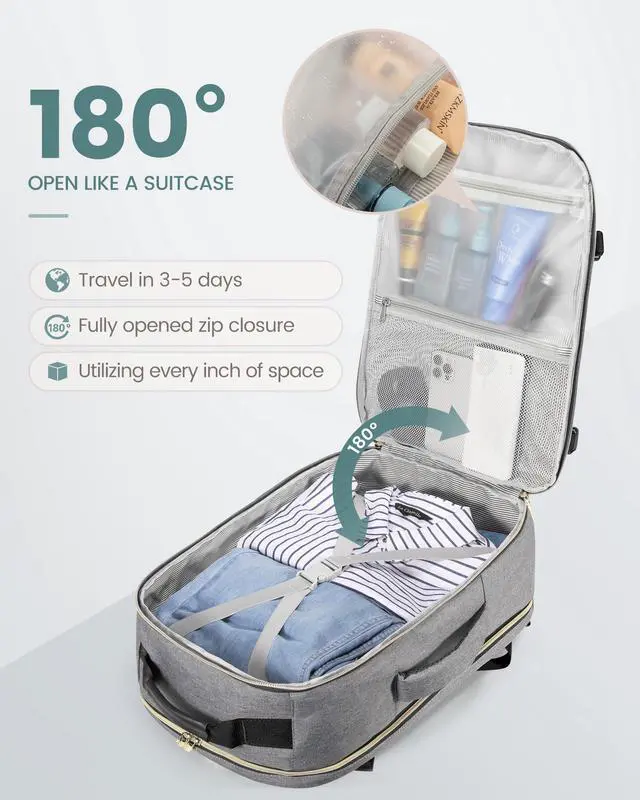 [(Large Capacity & Organized)] : With 50L space and 4 compartments, this backpack fits 8-10 outfits, shoes, books, and more. Includes a padded slot for a 18" laptop and a 12.9" iPad.