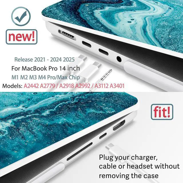 Full Access to All Ports: Precise cutouts allow full access to all ports and features, plug in cable, charger, or earphones without removing the case. for MacBook Pro case 14 inch allows the laptop opening more than 90 degrees.