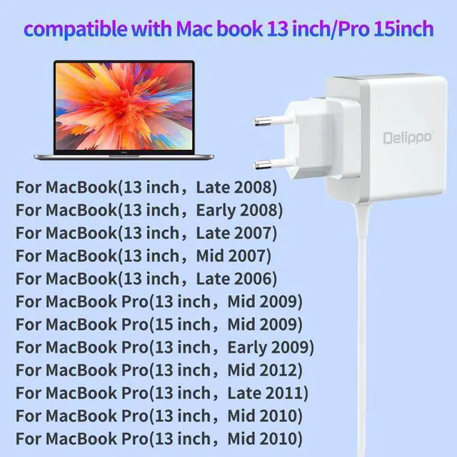 Delippo 16.5V 3.65A for Mac Book Pro Charger AC 60W L-Tip Power Adapter Replacement Charger for MacBook Pro 13 inch A1181 A1278 A1184 A1330 A1342 A1344 (Before Mid 2012 Models) with 6ft Long Cable