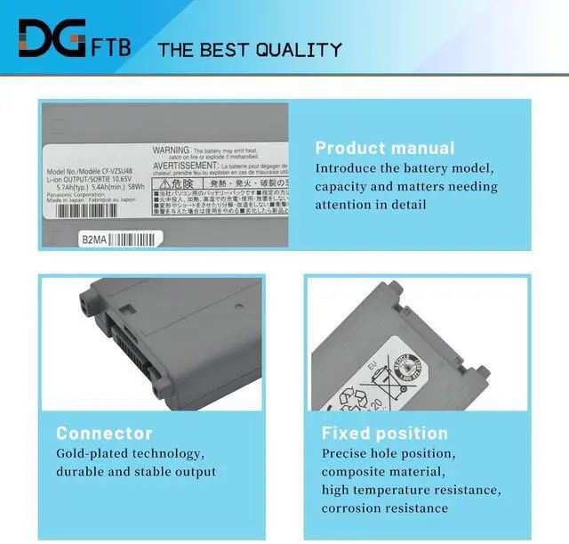 DGFTB CF-VZSU48 New Laptop Battery for Panasonic Toughbook CF-19 CF19 MK1 MK2 MK3 MK4 MK5 MK6 MK7 MK8 Series CF-VZSU48U CF-VZSU28 CF-VZSU48R CF-VZSU50 CF-VZSU58U ( 10.65V 58Wh/5700mAh 3-Cell)