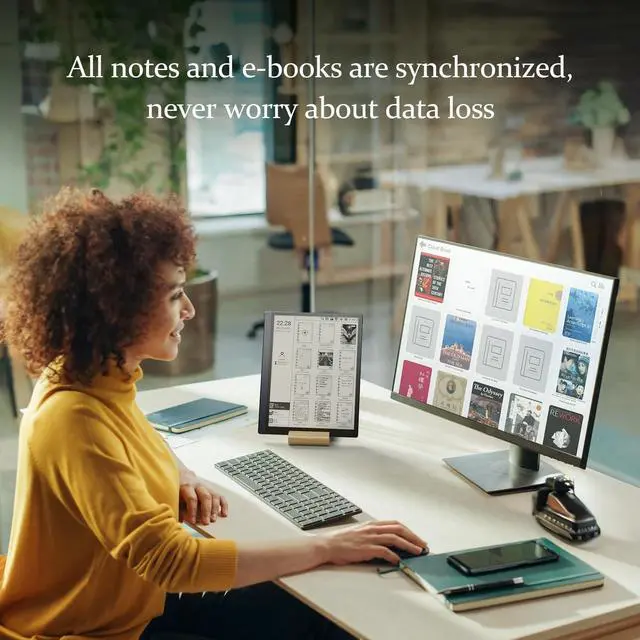 1. Kloudnote Slim is a digital notebook with pen, which has a beautiful and stylish design. This electronic notepad combines traditional e-book reader and handwriting note taking tablet functions. It is a new realse product of e readers devices 2025. ^^ 2. This epaper tablet is a tablet made of electronic ink screen technology, which has a 10.3 inch screen for eye protection effectivelyBuilt-in powful 1.8GH z A55 quad-core processor, 2G RAM and 64G memory, resolution of 1404x1872 (227ppi), it can be used as a reading tablet or a writing tablet.