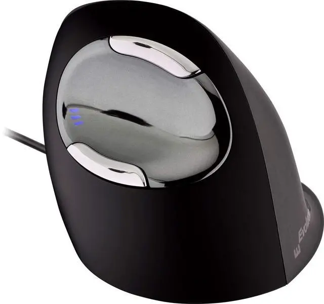 The VerticalMouse D (Right handed small sized mouse) by Evoluent helps avoids forearm twisting for comfort and good health NEW grooved buttons provides additional grip and precision when mousing The shape is thoughtfully sculpted for uncompromising comfort and easy-to-reach programmable buttons No finger contortions are needed to operate the buttons The thumb rest has been reshaped to provide even more comfort over earlier versions Features two thumb buttons which provides greatly extended functionality when used with the included driver An extra wide lip along the bottom edge prevents the last finger from rubbing the desk Pointer speed controls on the side allow convenient adjustment without even releasing your grip from the mouse Top mounted LEDs show through the thumb rest to indicate selected pointer speed including extra low (XL) low (LO) MD (medium) to high (HI) Basic functionality in OS X or newer without a driver Linux - Basic functionality without a driver