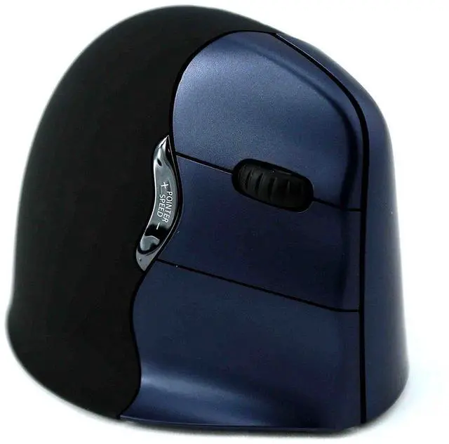 PREVENTS WRIST DISCOMFORT - Evoluent's ergonomic VM4RW VerticalMouse 4 gently supports your right hand in an upright neutral position. The patented shape prevents you from twisting your forearm like what you usually do with an ordinary mouse. ^^ PROGRAM YOUR MOUSE TO YOUR NEEDS - Install the Evoluent Mouse Manager onto your computer to configure the VerticalMouse's buttons. Not only can you change their function but you can also set how the buttons work within different programs. ^^ ADJUST MOUSE-SPEED FROM LOW TO HIGH - You can adjust the pointer speed from low to high with the optical sensor controls on the side of the mouse.