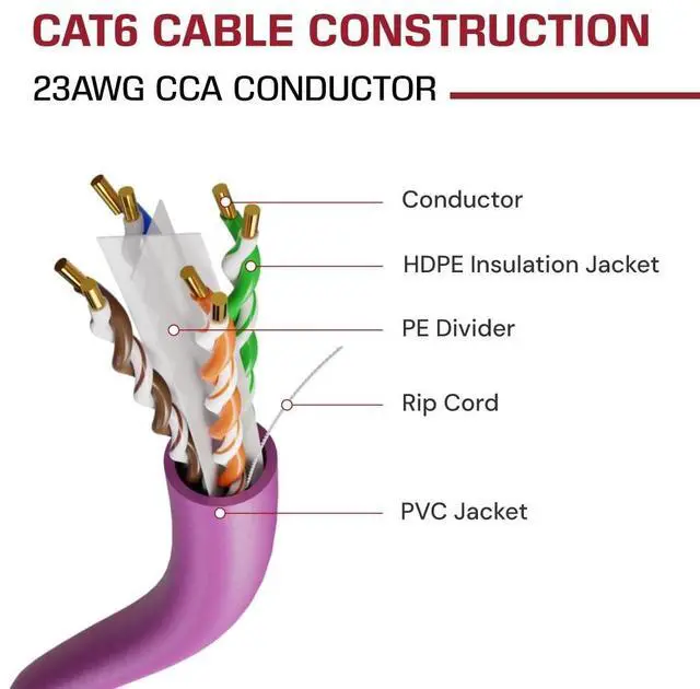 • DURABLE 23AWG CCA CONDUCTOR: Made with 23AWG Copper Clad Aluminum (CCA), this CAT 6 ethernet cable offers consistent data transmission. This ethernet cable roll works with various networking tools, ideal for different applications.