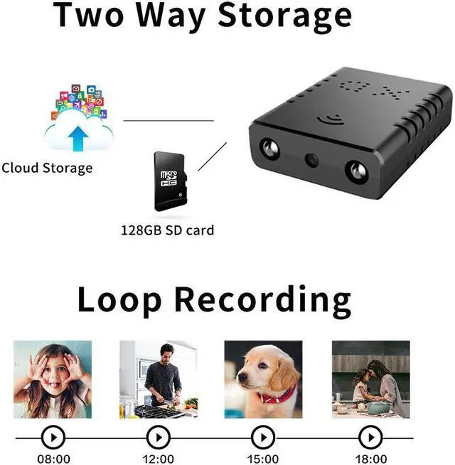 Size: 1.57X 1.18X 0.5 in, weight only 0.2 lb, ideal for carrying, outdoor use. 4, the camera can be mounted on the wall? Our camera has a complimentary 360-degree rotating bracket, no need to drill holes in the wall, just mount the camera on the bracket, the bottom of the bracket has 3M adhesive, can be attached to the wall. Convenient and fast. 5, How to charge the camera? We deliver a 1-meter data cable, the camera can be connected to a USB device through the cable, such as "mobile power", "USB socket", etc. to achieve power supply. 6, What accessories are presented? We are equipped with a 1-meter data cable, 360-degree rotating bracket, card reader, card pin, manual 7, How much memory card does the camera support? Maximum support for 128G memory card