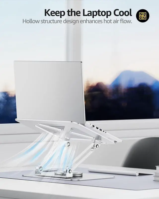 [(360degRotation)] Featuring a 360deg rotatable Two-axis connecting with the base, makes the 360degrotation more flexible, computer stand allows you to swivel your laptop to any angle.