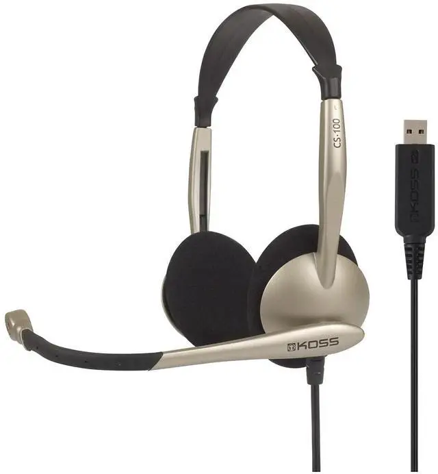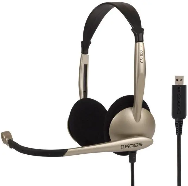 Koss CS100 USB Double Sided On-Ear Headset with Boom Microphone, Lightweight Design, Black and Beige