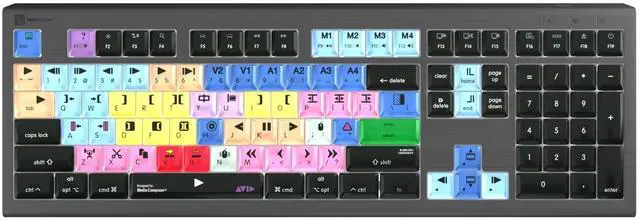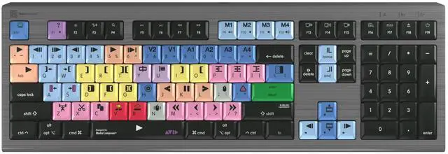 Skip the tedious menu navigation and save time in your editing workflow with a Logickeyboard designed for Avid Media Composer ^^ 60+ intuitive and easily accessible keyboard shortcuts makes you master Media Composer in no time ^^ For the best adaptation to working in low-light environments the keys are backlit, and the illumination is dimmable in 5 levels - the industry's most powerful backlit shortcut keyboard ^^ The Astra2 Backlit Logickeyboard comes with a built-in USB 3.0 Super-Speed hub for easy connection of USB peripherals, ex. an SSD drive ^^ Plug-n-play compaibility to MacOS, including 19 F-keys