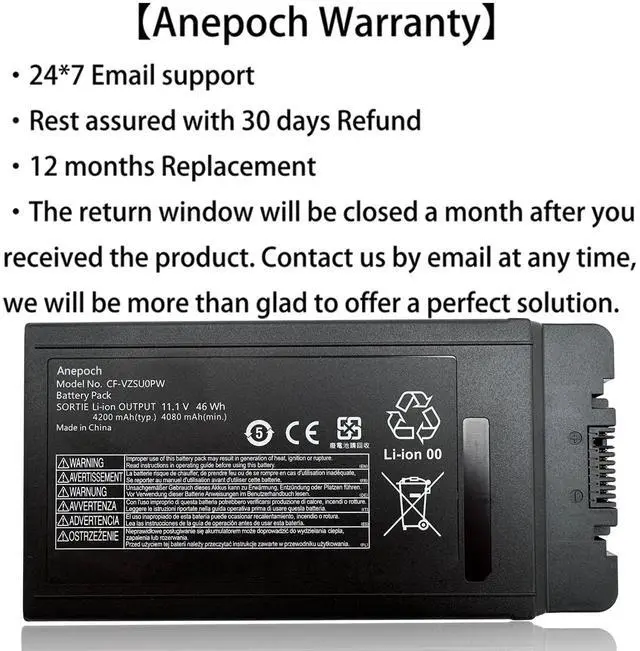 Anepoch CF-VZSU0PW Laptop Battery Replacement for Panasonic TOUGHBOOK CF-54 CF-54F0961NE CF54 Series CF-VZSU0LW CF-VZSU0PR CF-VZSU0GW 11.1V 46Wh 4200mAh