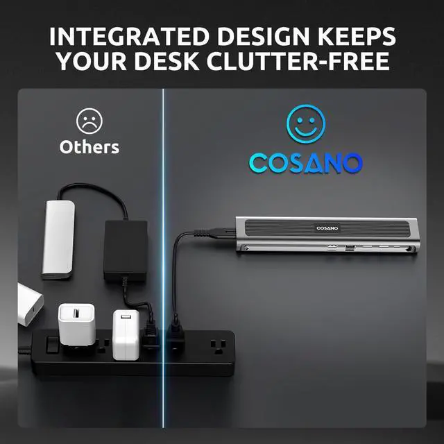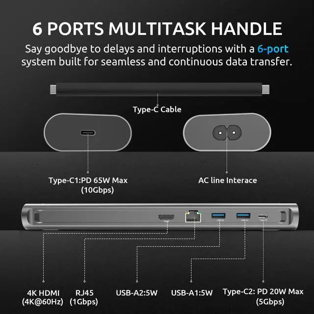 [(Designed for the Apple Ecosystem)] This all-in-one docking station with power supply is tailored for Apple users, seamlessly integrating with MacBook, iPad, and iPhone. Effortlessly charge, connect, and expand your workspace while maintaining Apple's minimalist design philosophy and ensuring reliable performance. Whether you need a Mac docking station with charging or a hub that keeps all your devices powered up, this solution is perfect for streamlining your workflow.