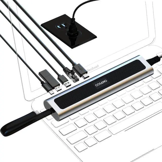 COSANO 100W MacBook Pro Docking Station - Aluminum Mac Mini Stand & USB-C Hub with 4K HDMI - Universal Dock for Apple Devices with 100W Built-in Power + Double-Ended USB-C Cable + AC Power Cable