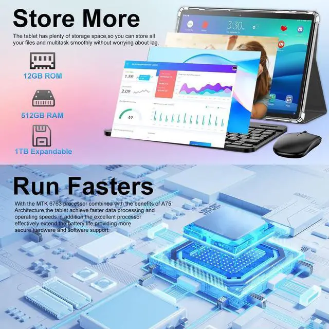 - **Powerful Performance**: The Crelander Android Tablet boasts an impressive 12GB RAM and 512GB ROM, ensuring seamless multitasking and ample storage for all your apps, media, and files. Experience lightning-fast performance with Android 13, delivering a smooth user experience.