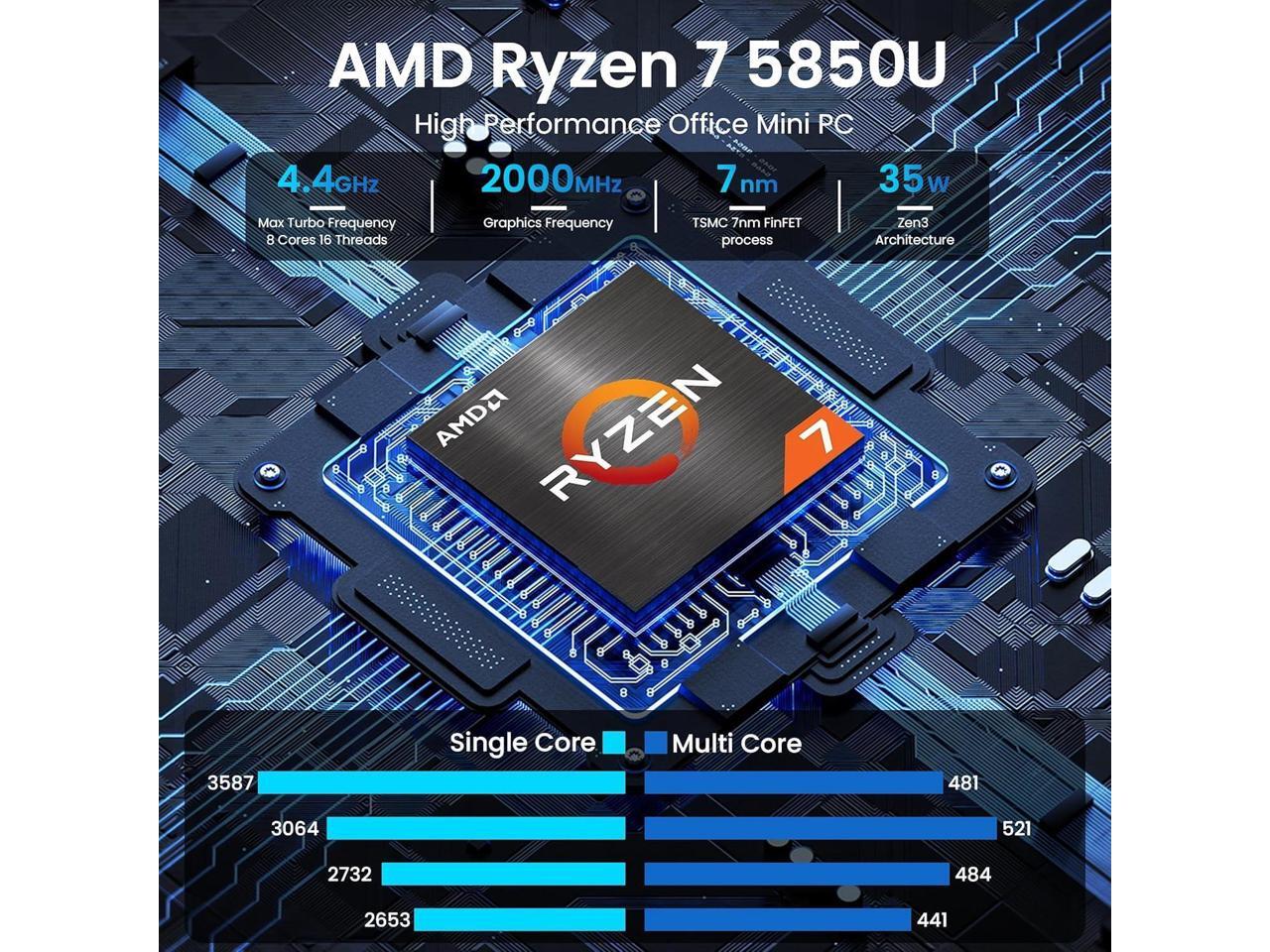 - [(Powerful CPU AMD RYZEN 7 5850U)] Beelink SER5 Pro mini pc powered with AMD Ryzen 7 5850U, 8 Cores 16 Threads,L2 4MB L3 16MB Cache. Base Clock 1.9GHz, Max up to 4.4GHz. It handles heavy computing tasks smoothly, multitasks better, and provides you with excellent performance. Which can be widely used for gaming(CS:GO GTA V, Fall Guys, etc) office(PPT, AI, PS, PR) and home(video, music and web content)