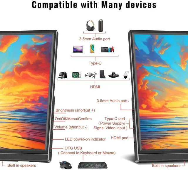 Wide Compatibility: Portable monitor comes with 2 USB Type-C ports and 1 Mini HDMI port for easy connectivity an