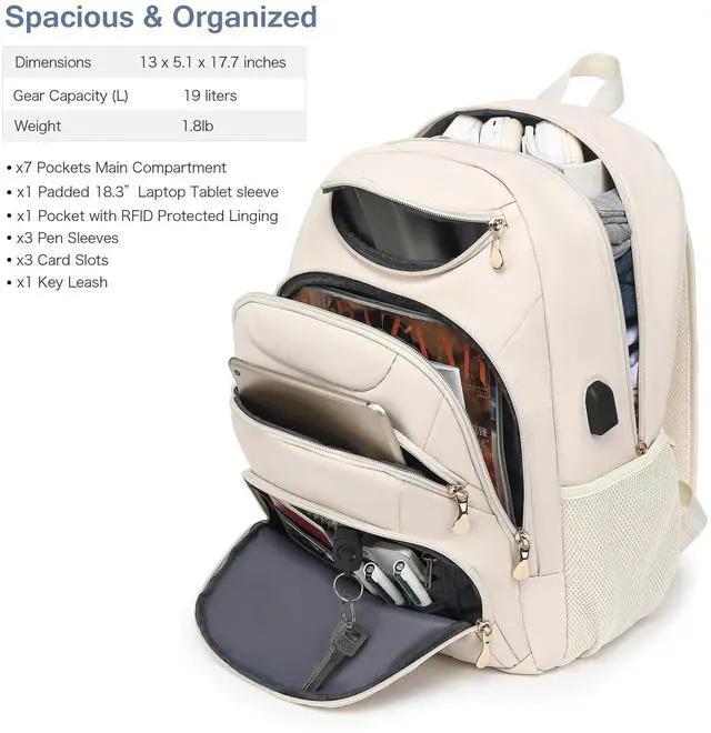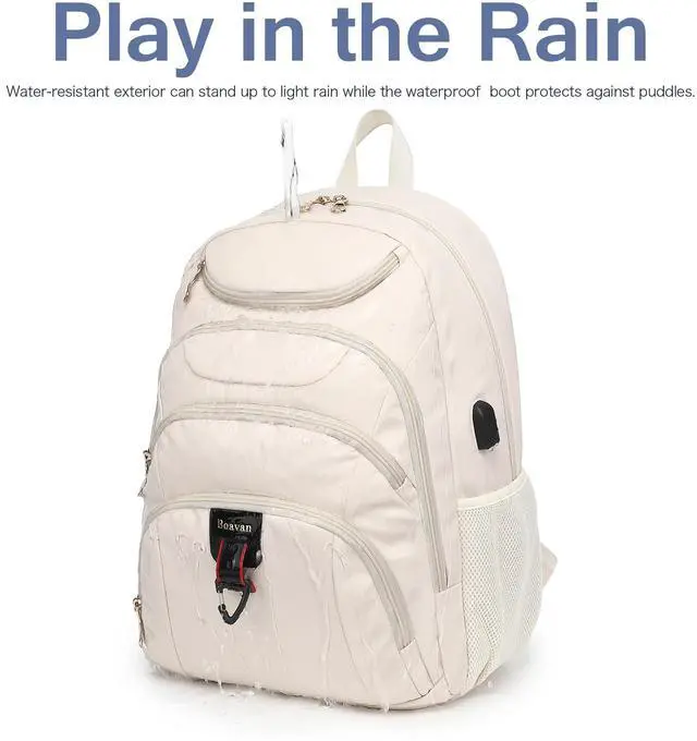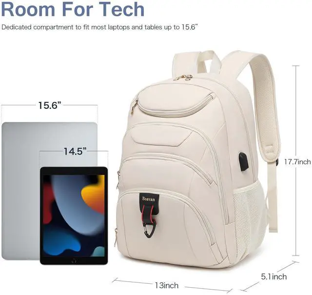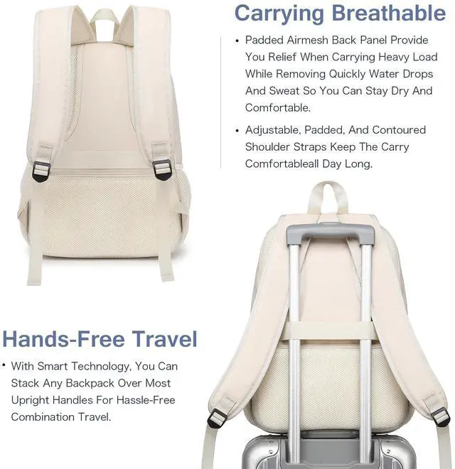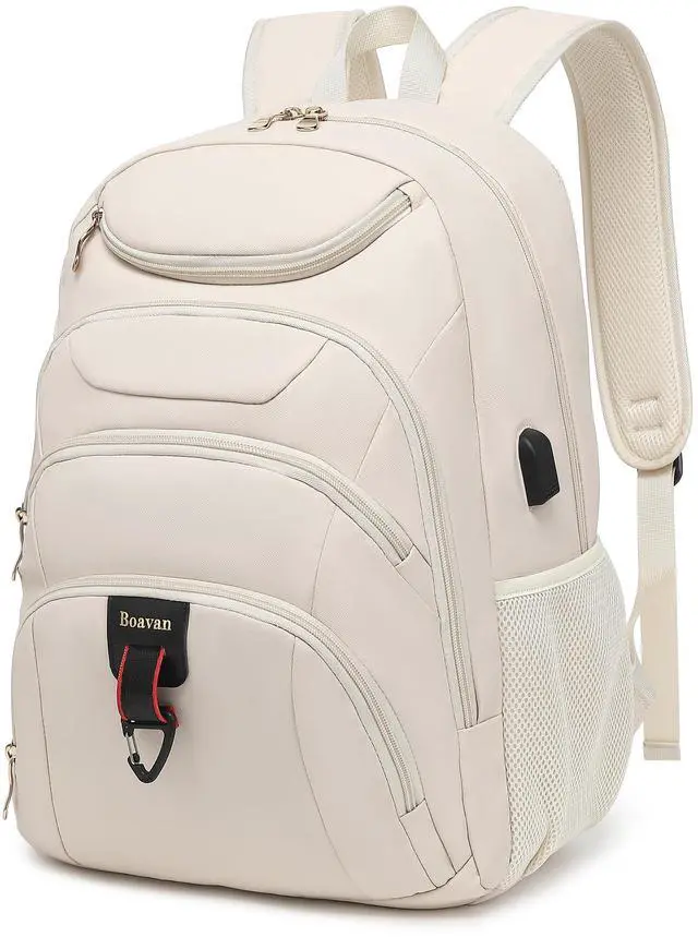 Boavan Laptop Backpack for women, 15.6 inch Laptop Bag with USB Port, Waterproof Travel Work Backpack Purse, Anti-Theft Teacher Nurse Doctor Casual Bookbags Office Business backpack, Cream Beige