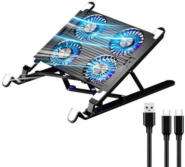 Laptop Cooling Pad for 11- 17.3 Inch Gaming Laptops, Foldable Laptop Stand Riser Holder with 4 Quiet Fans for Notebook, Portable Laptop Cooler with 7 Adjustable Height, LED Lights