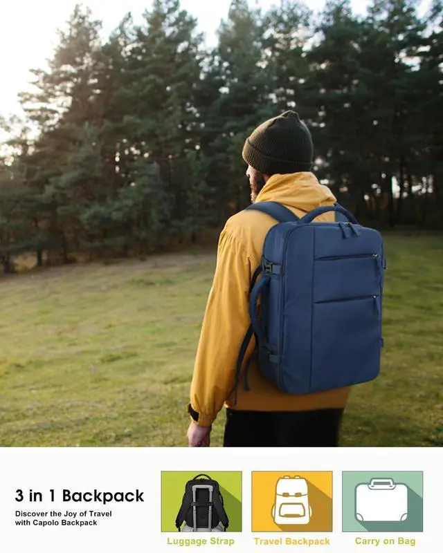 Capolo Travel Backpack for Women Men Waterproof Laptop Backpack Airlines Approved Carry On Backpack Bag Computer Bookbag for Business, Work, Traveling Fits 15.6 Inch Laptop(Dark Blue)