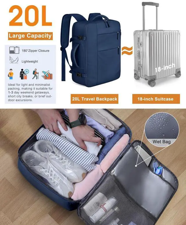 3 in 1 Backpack with 20L Capacity :Side handle helps you seamlessly transition from a backpack to a carry-on bag, providing flexibility for any travel scenario. The backpack mode ensures comfort and f