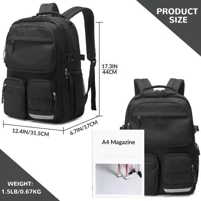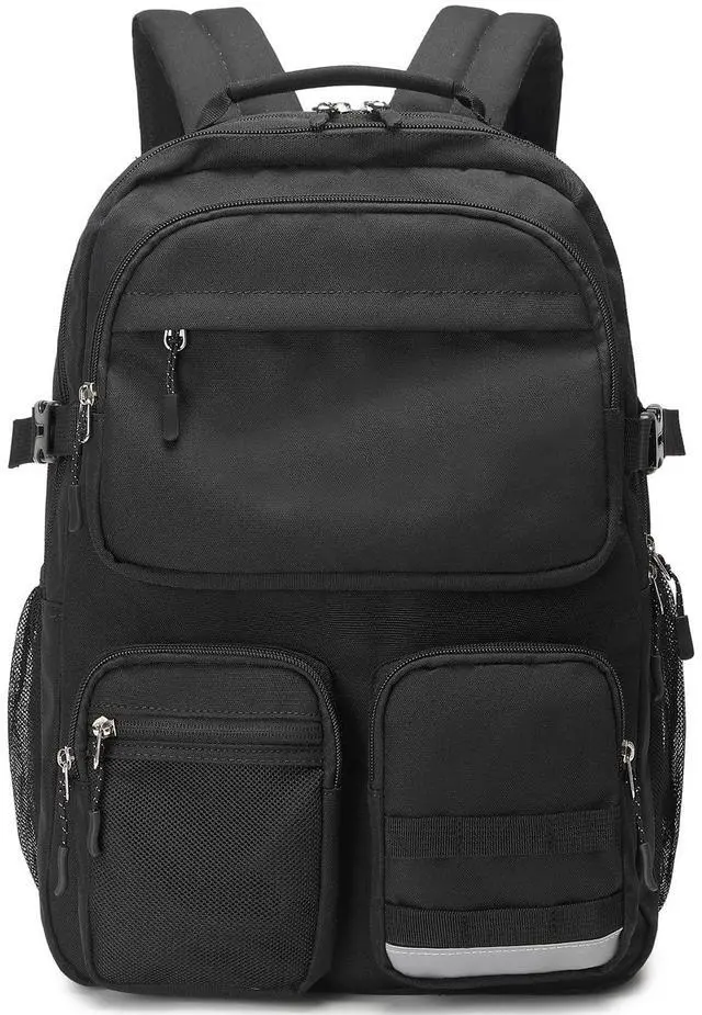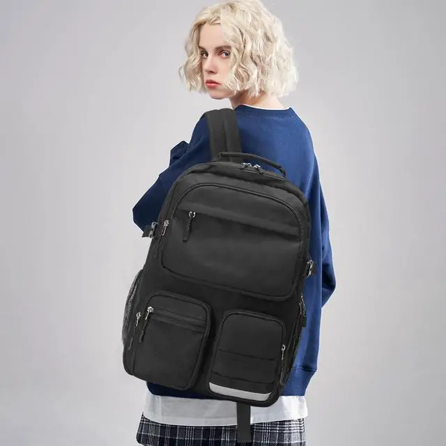 El-fmly Big Student Backpack for Teen Girls Boys, Water Resistant Multi Pockets Daypack with 15.6 Inch Laptop pocket for Travel School College (Black)