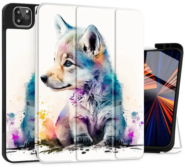 Tuiklol Case for M2 iPad Pro 12.9 inch Generation 6th/5th/4th/3rd 2022 2021 2020 2018 Release - Built in Pencil Holder Slim Protective Stand Back Cover with Auto Wake/Sleep iPad Cover,Cute Dog