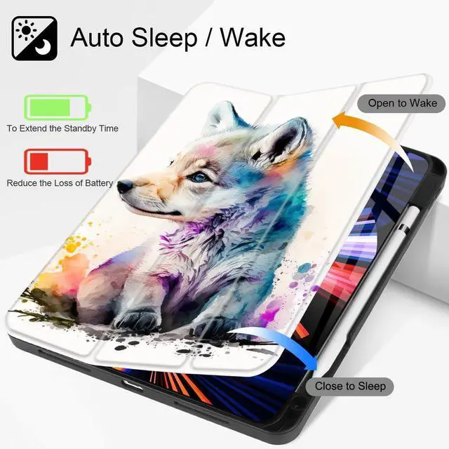 Multi-Function Stand: Slim Lightweight Trifold Stand provides viewing and typing stand mode, Magnetic smart cover supports auto wake & sleep function. Powerful magnet secures the case closure, more convenient to snap on and off the tablet, extend the battery life