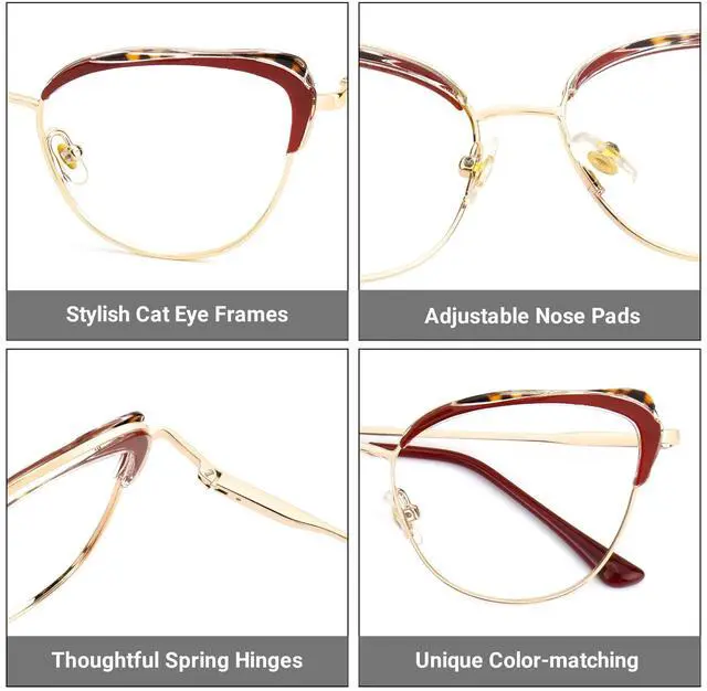 [Premium Material]: Cat eye glassess are made of preimum TR90 and metal material, providing sturdiness and durability. The lightweight design reduces pressure on the nose for long-lasting comfort.