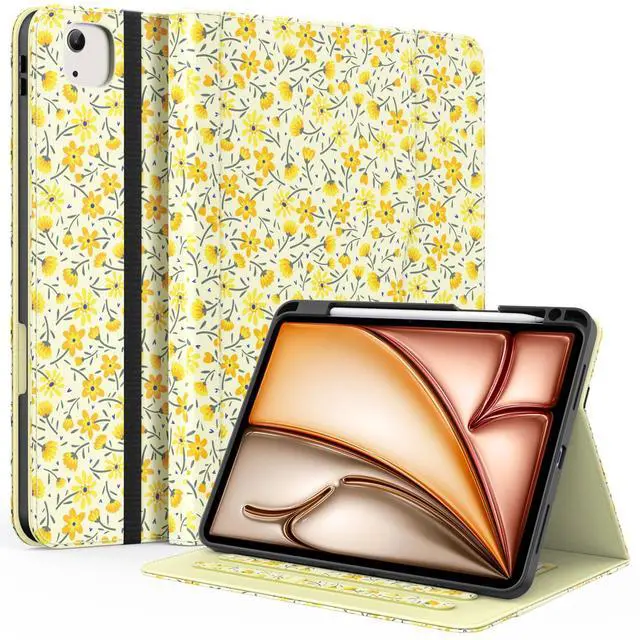 ZoneFoker Case for iPad Air 11-inch M3/ M2 (2025/2024), iPad Air 5th/ 4th Generation 10.9'' (2022/2020), iPad Pro 11 (4th/3rd/2nd/1st Gen), Multi-Angle Stand Cover with Pencil Holder, Yellow Flower