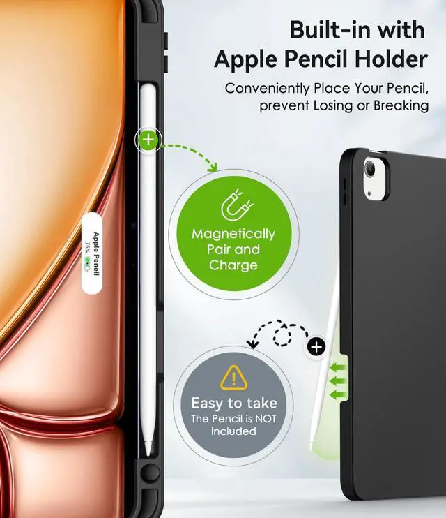 Apple Pencil Holder: Zonefoker iPad air 11-inch has a built-in holder for your Apple Pencil Pro ( Apple Pencil 2nd Generation work with iPad Air 4th/5th gen & iPad Pro 11-inch 1th/2th/3th/4th gen) to ensure it never gets lost and support the pen wireless charging (Apple Pencil is NOT included)