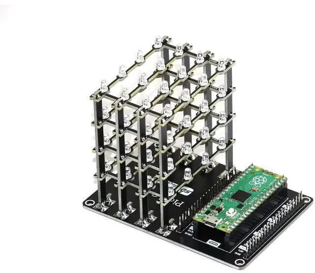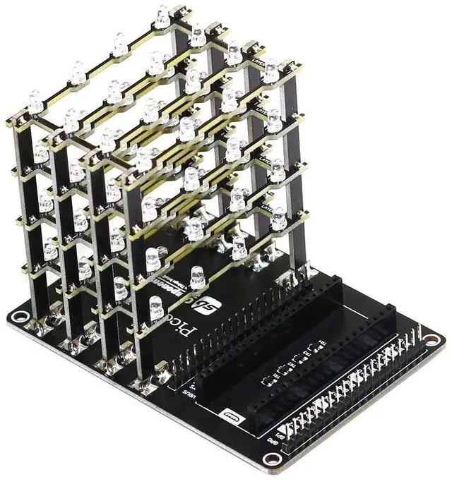 4x4x4 LED Cube HAT for Raspberry Pi Pico with 5V DC operating voltage ^^ 64 high intensity mono chromatic LED ^^ Easy installation with capability to achieve the various dynamic 3D effect ^^ 40-pin stacking header for accessing GPIO of Pico ^^ Each Layer as well as each LED can be individually accessed and controlled as per requirements