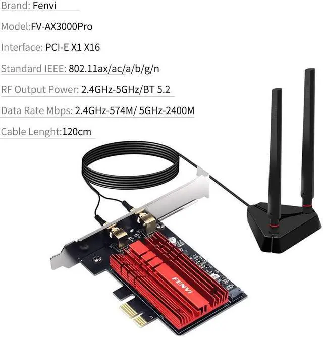 MORE POWERFUL WIFI Desktop Gaming Network Adapter with 1.2m High Gain Antenna YOU DESERVE Tri-Band: 2.4Ghz 5Ghz 6Ghz 160Mhz Best Wifi Card for Gaming Wireless Adapter Card, With a Tri-Band Wireless PCI-E Network Adapter Card, you can easily add high speed WiFi connectivity to a desktop computer through a PCI Express slot -- no more messy Ethernet cables needed! Also enjoy a more stable WiFi connection than USB Bluetooth WiFi adapters. Let's start surfing online without any hesitation and waiting!