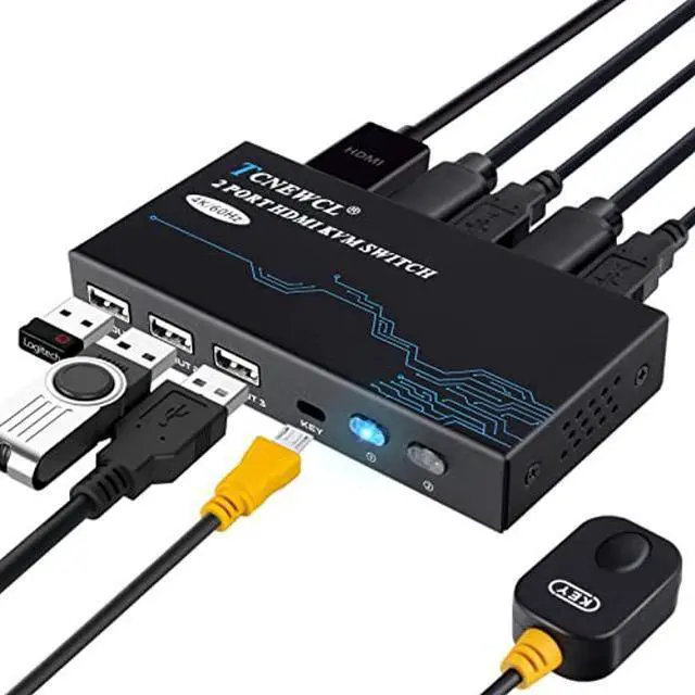 2-Port HDMI KVM Switch: The TCNEWCL USB HDMI KVM Switch allows you to control 2 computers from a single HD monitor and 3 USB 2.0 devices. No more connecting and disconnecting devices between computers.
