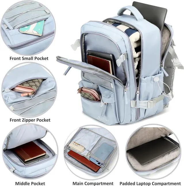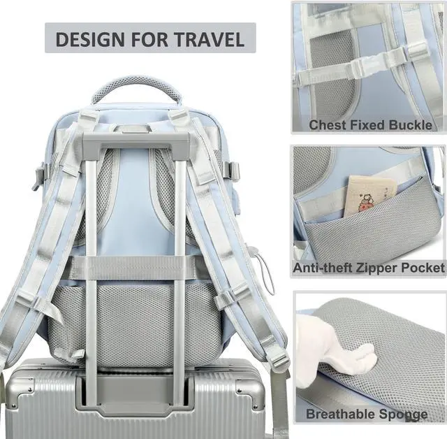 Travel Backpack for Women Men 15.6 Inch Laptop Backpacks with USB Port Carry on Backpack Flight Approved Large Back Pack College Bookbags Outdoor Sports Hiking Rucksack Casual Daypack ( Blue)